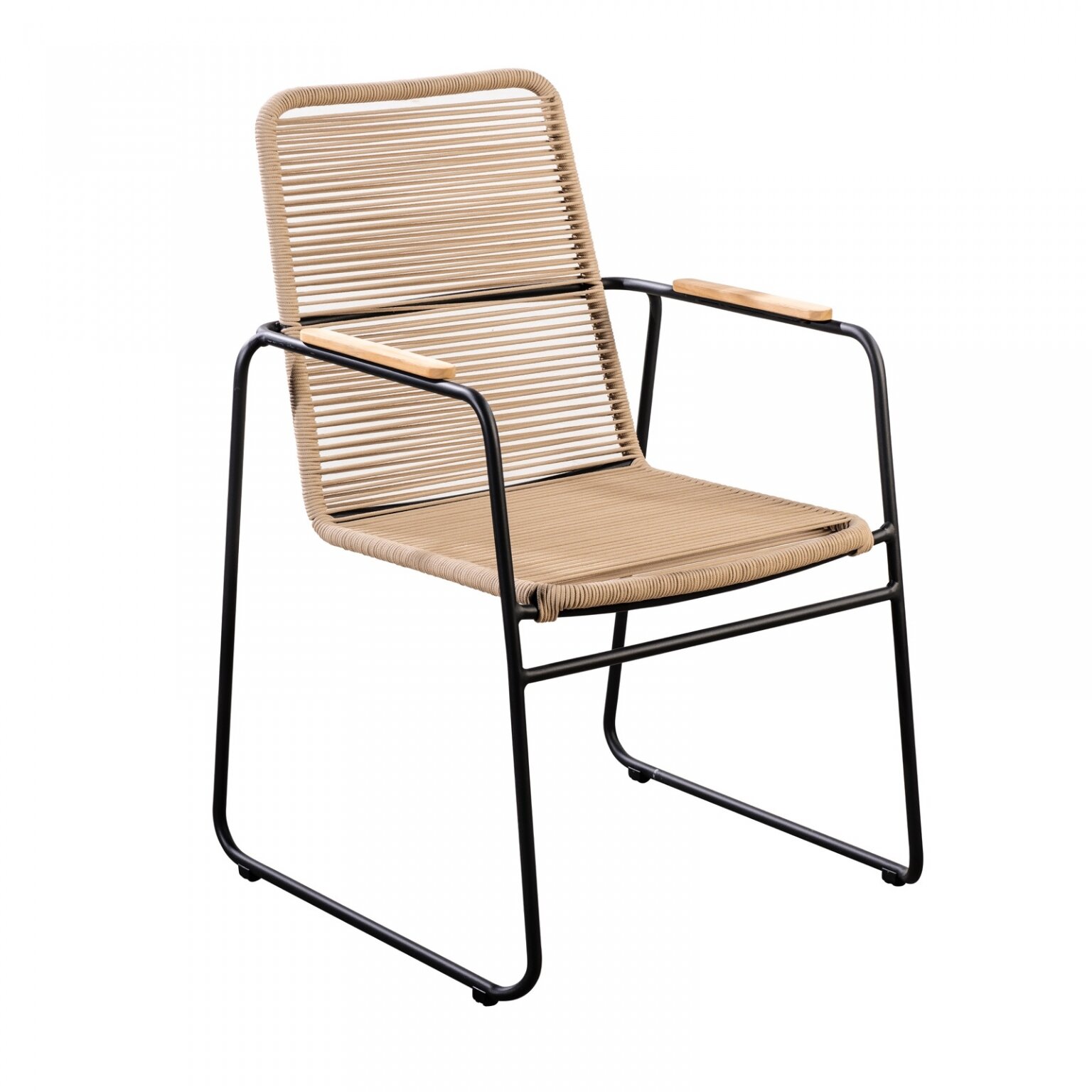 De Wasabi armstoel is gemaakt van een aluminium frame zwart gepoedercoated met een rope zitting en rug in natural en heeft een teakhouten armleuning.