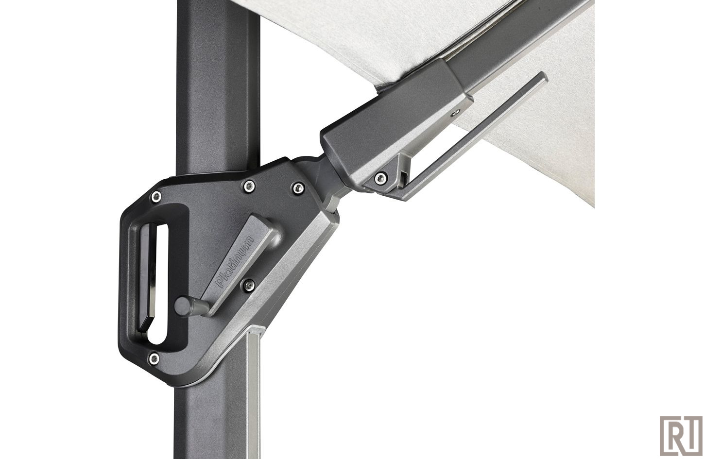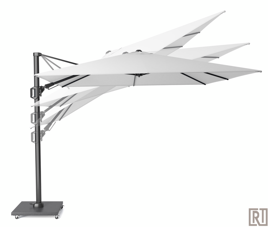 De Challenger T2 vrijhangende parasol heeft een modern frame en kan: 360 graden draaien, schotelen en zijwaarts kantelen.