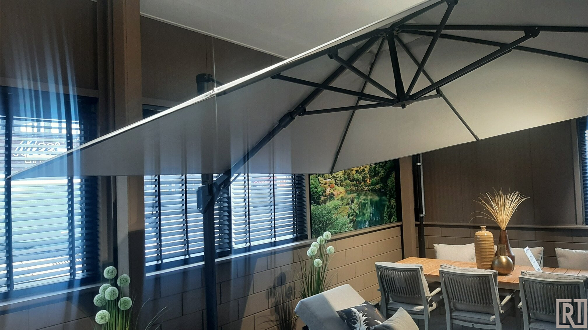 Uiteraard is deze zweefparasol in de smaakvolle showroom gelegen nabij Amsterdam en Utrecht van Rijkenberg Tuinmeubelen te bewonderen en te testen.