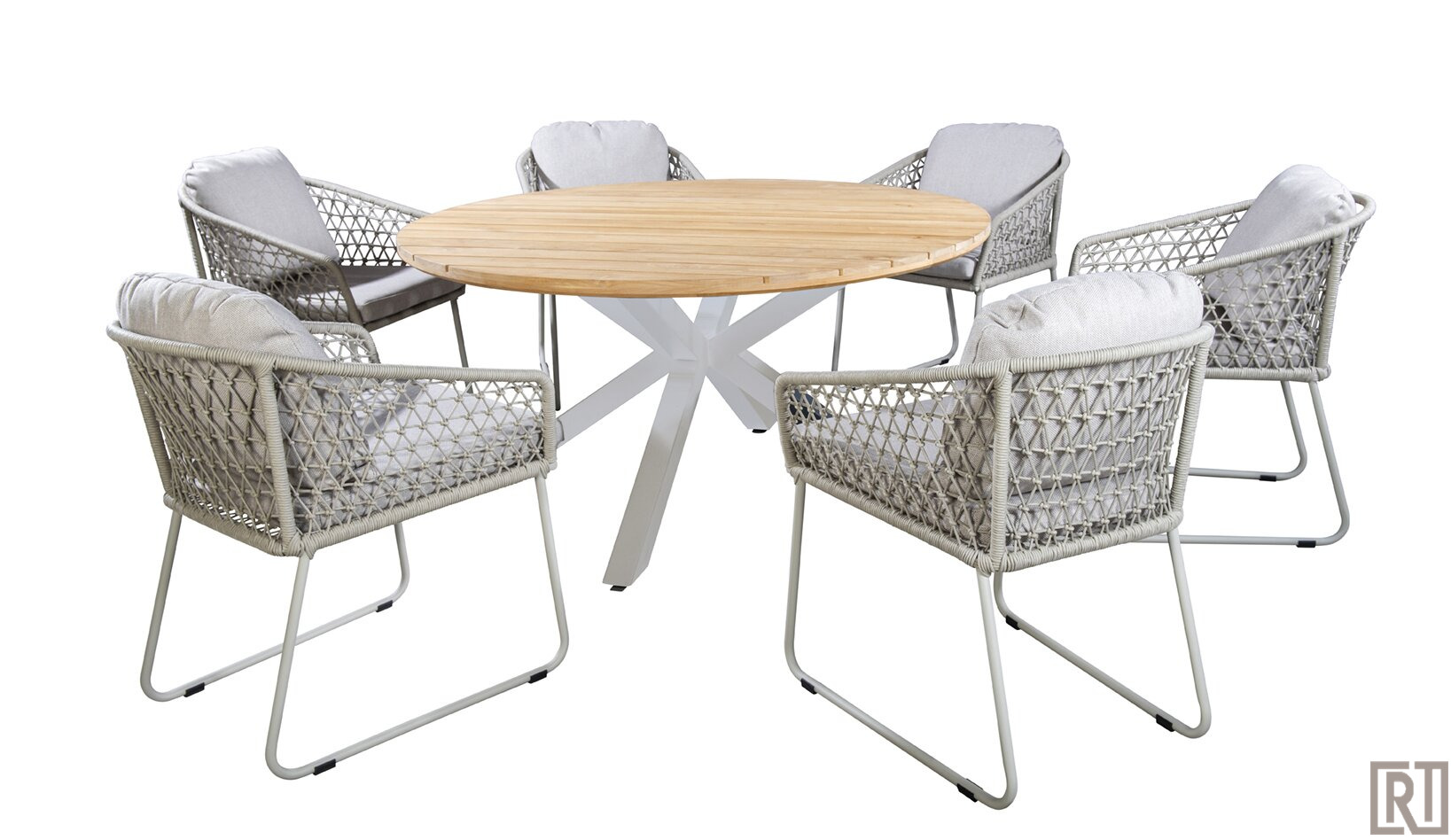 De Bara armstoel is voorzien van een aluminium frame in de moderne kleur van nu namelijk Salix en is bespannen met rope in de kleur salix. Deze armstoel heeft een heerlijke kussenset. in de stof flax beige en is all weather.