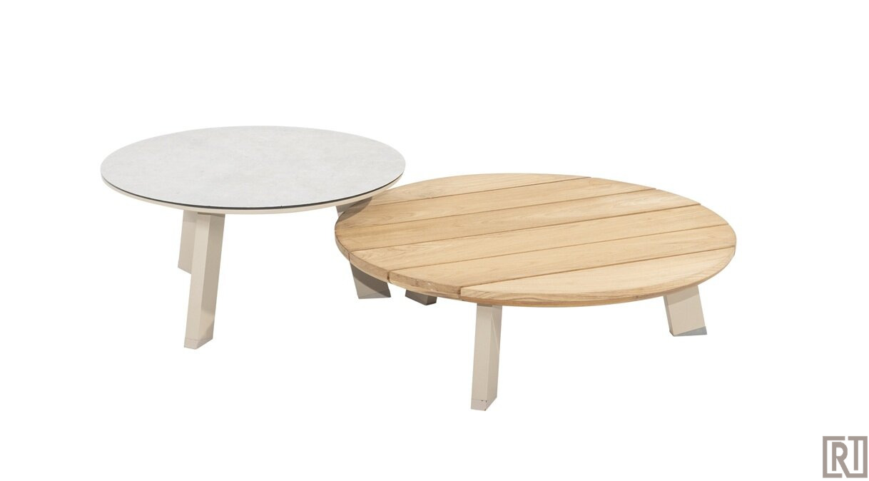 De maten van de tafels zijn als volgt: 1x 80cm met teak top en 1x 65cm met ceramic top