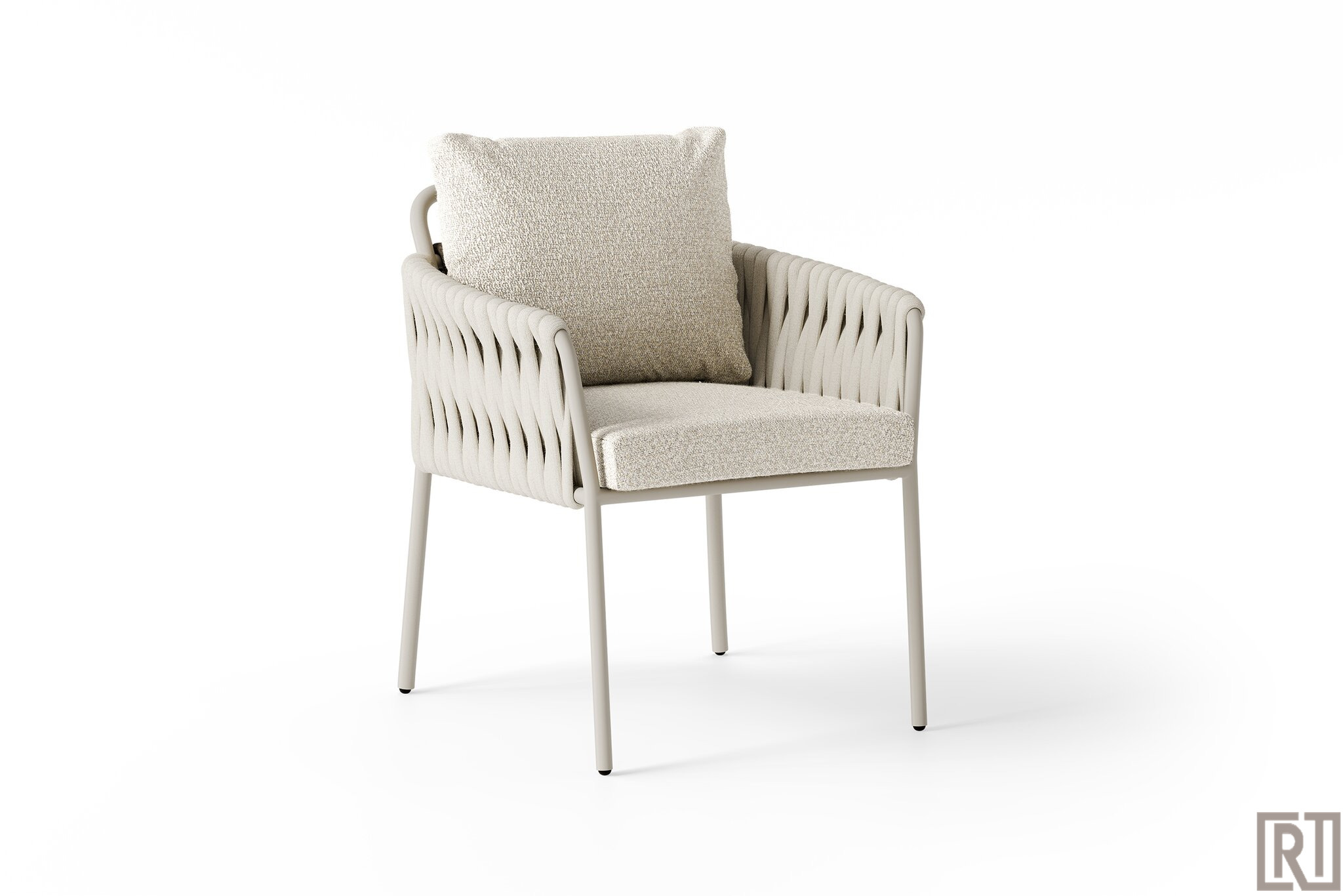 Alle armstoelen zijn gemaakt van een zeer sterk aluminium frame met sterke poedercoating en de kuip is gemaakt van het sierlijke rope gevuld met schuim waardoor het snel droogt.