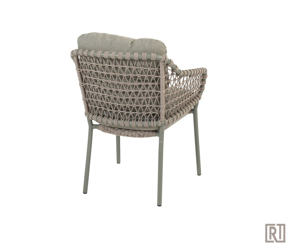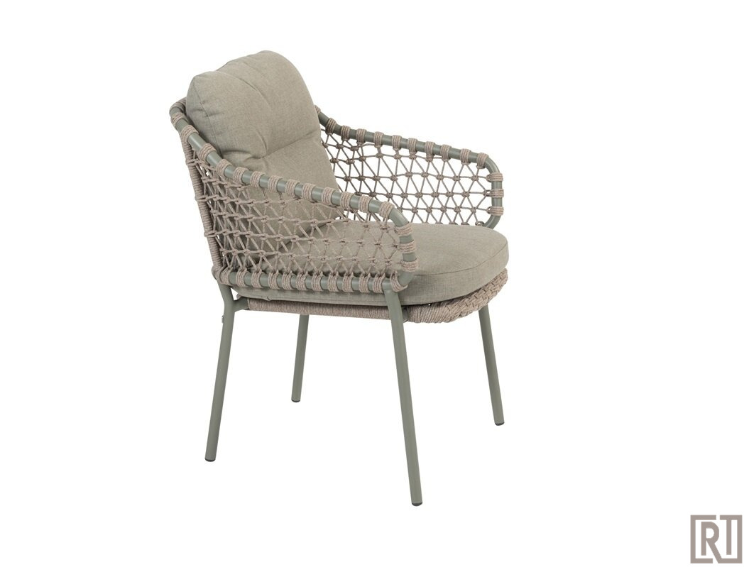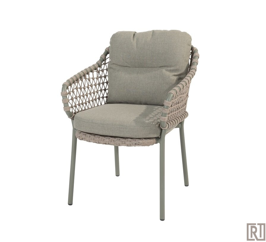 De Jura stacking chair van 4 seasons outdoor is een schitterende dining chair ( stapelbaar ) met framekleur olive green in combinatie met taupe kleurig rope. Dit geeft zo'n warme sfeer!
