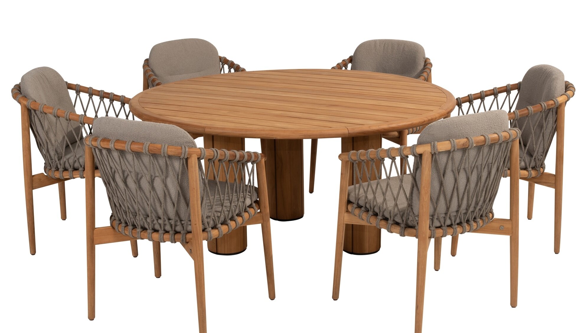 Wat dacht u van een combinatie met een Corsica barrel ( organische vorm ) diningtafel of de 160cm ronde versie heeft u zo'n mooie set op uw terras staan waarvan u elke keer weer een glimlach op uw gezicht krijgt.