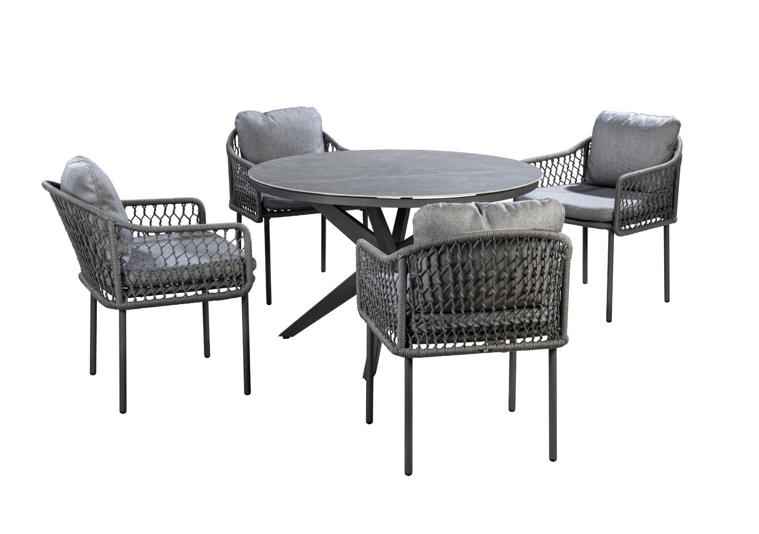 De Calma dining table van Yoi is een fraaie en royale ronde tuintafel van 120cm geschikt voor 4 personen.