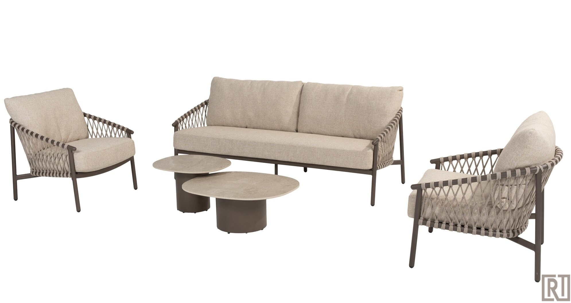 De Allora 3-delige loungeset van 4 seasons outdoor is een moderne loungeset in de nieuwe kleur terre in combinatie met rope.