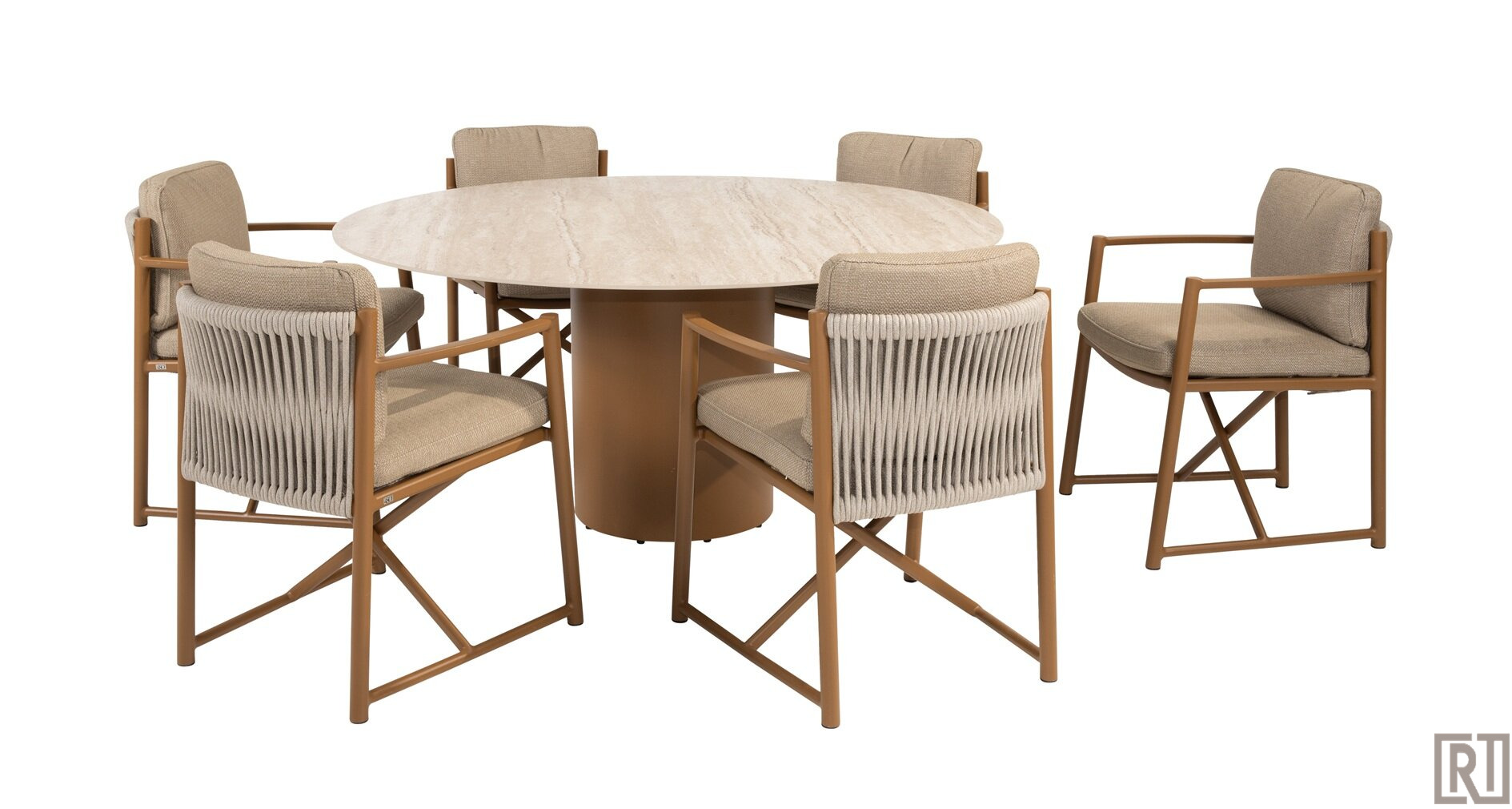 De Marina dining chair van 4 seasons outdoor is een retro dining chair in de vernieuwende framekleur amber( bruin-camel ) in combinatie met taupe kleurig rope. Dit geeft zo'n fraaie uitstraling.