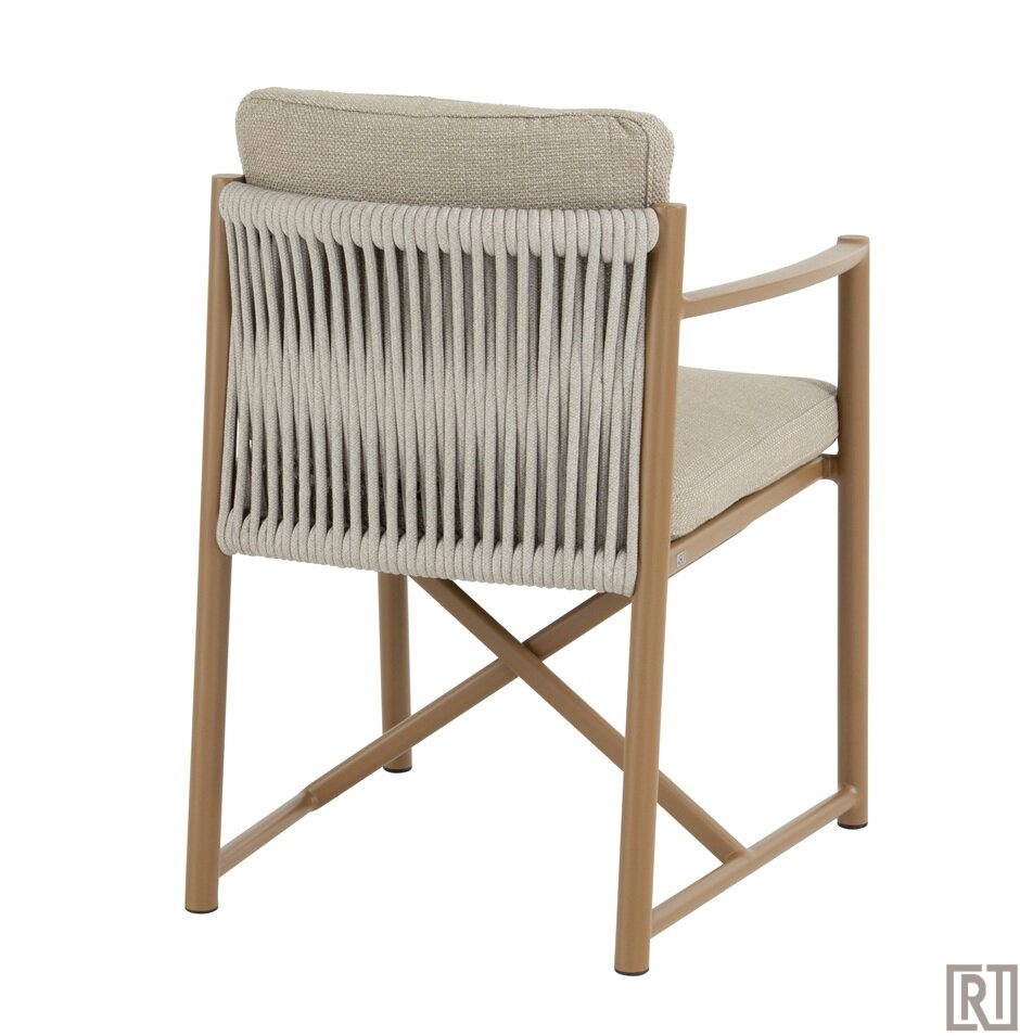 De Marina dining chair heeft een comfortabel zit- en rugkussen in de olefin all weather stof Ipanema amber