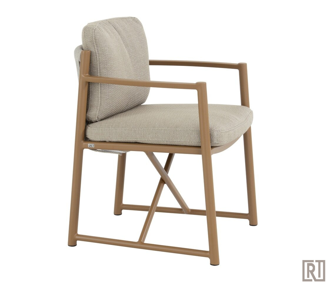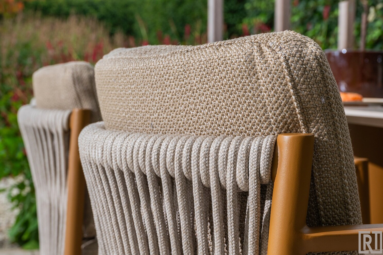 De Marina dining chair heeft een comfortabel zit- en rugkussen in de olefin all weather stof Ipanema amber