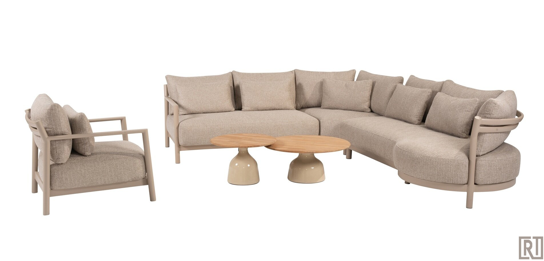 De Mykonos loungeset is gemaakt van onderhoudsvriendelijk aluminium met latte kleur poedercoating.