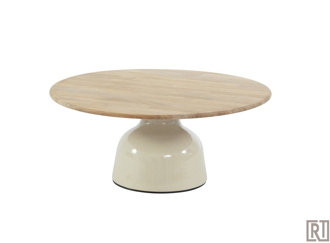 De June coffeetable van 4SO is een geheel nieuw soort coffeetable. Deze coffeetable heeft namelijk een zeer fraai keramiek onderstel in creme met een massief teakhouten blad.