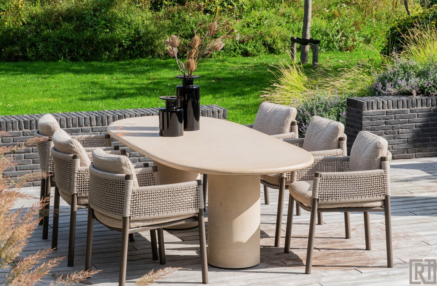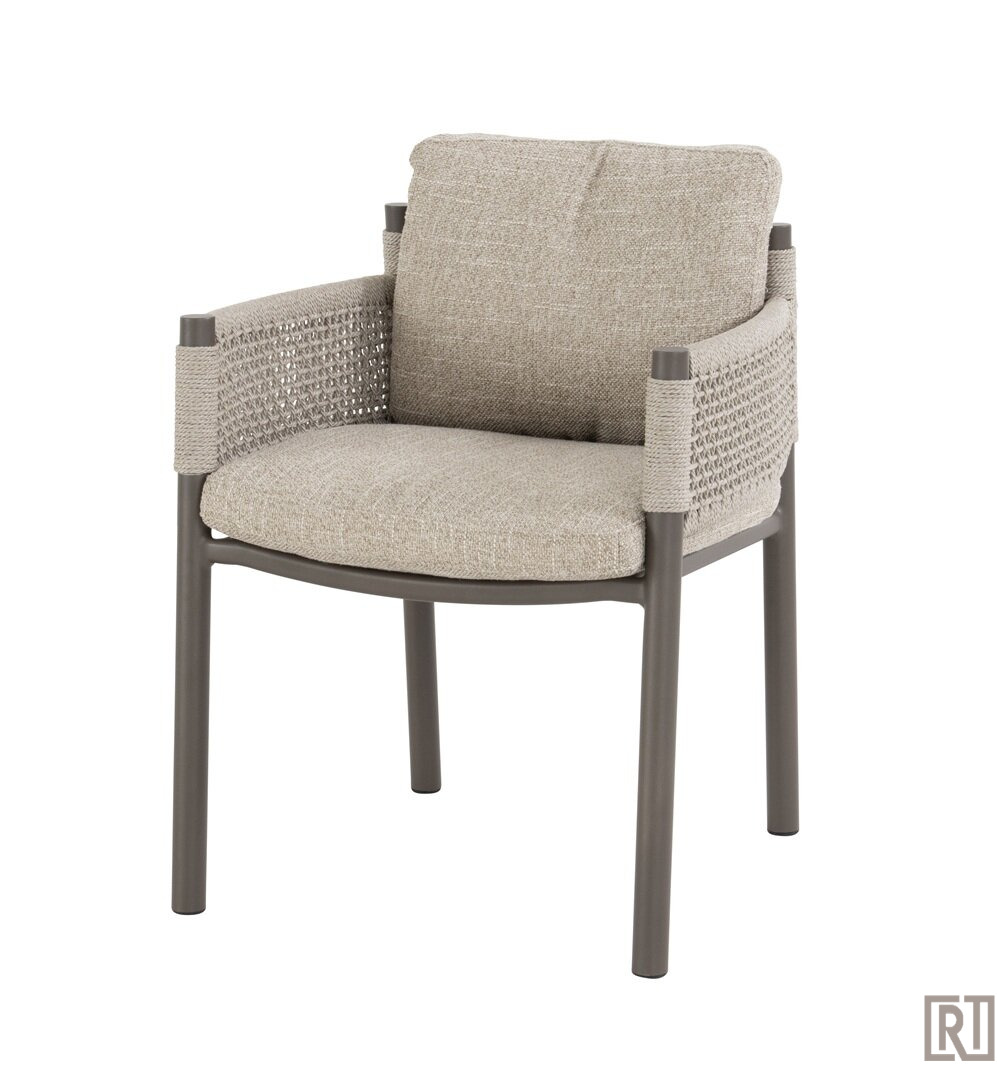 De Savanne dining chair van 4 seasons outdoor is een strakke dining chair in de kleur terre in combinatie met rope in een nieuwe vorm.
