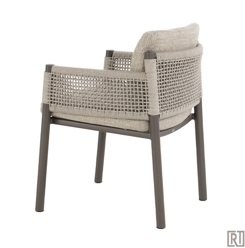 De Savanne dining set van 4 seasons outdoor is een strakke moderne dining set in de kleur terre in combinatie met rope en het nieuwe materiaal Mortex.