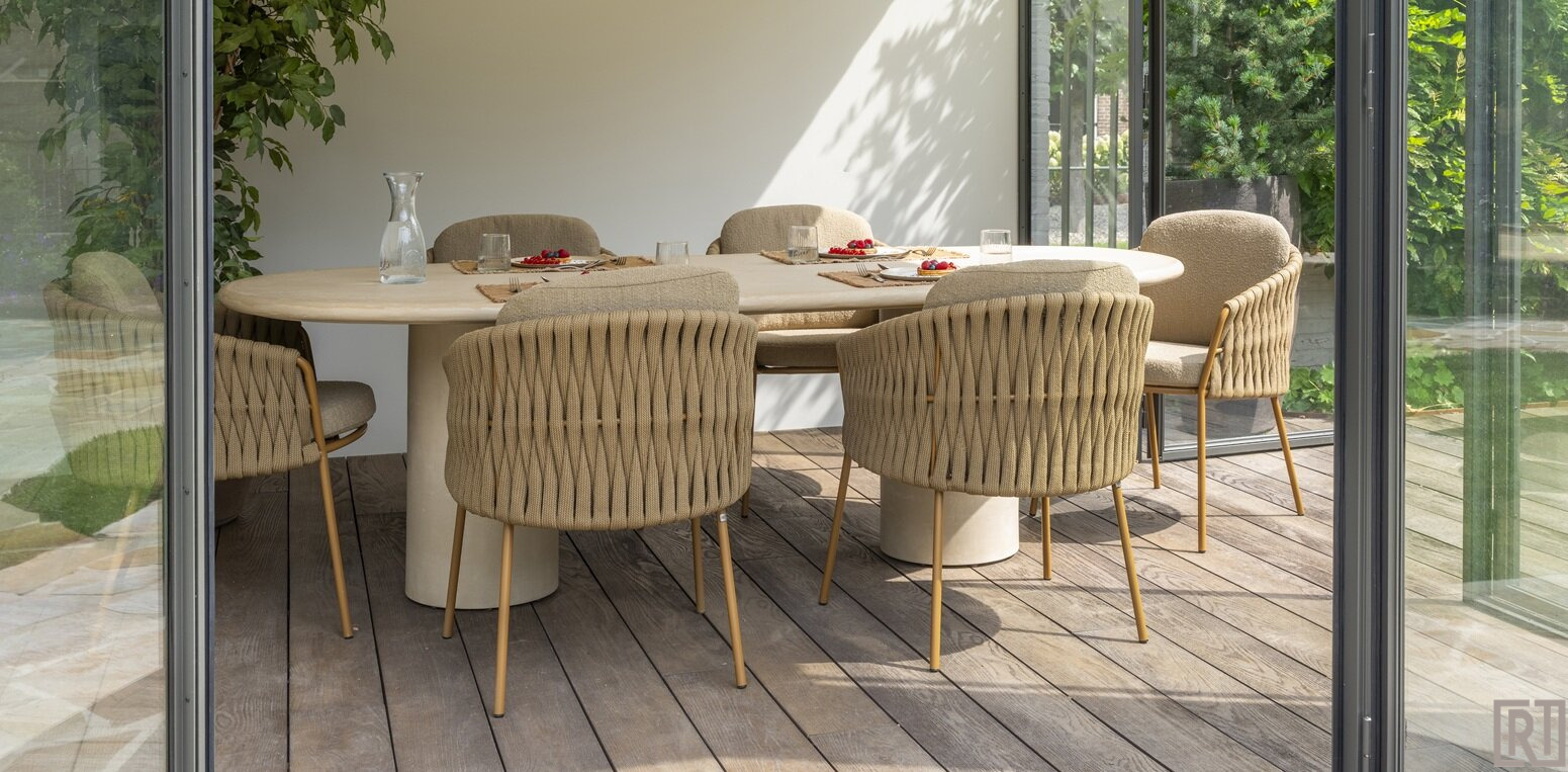 Deze Molina dining set is vanaf december 2025 in onze sfeervolle showroom te bekijken en te proberen maar nu al bestelbaar.