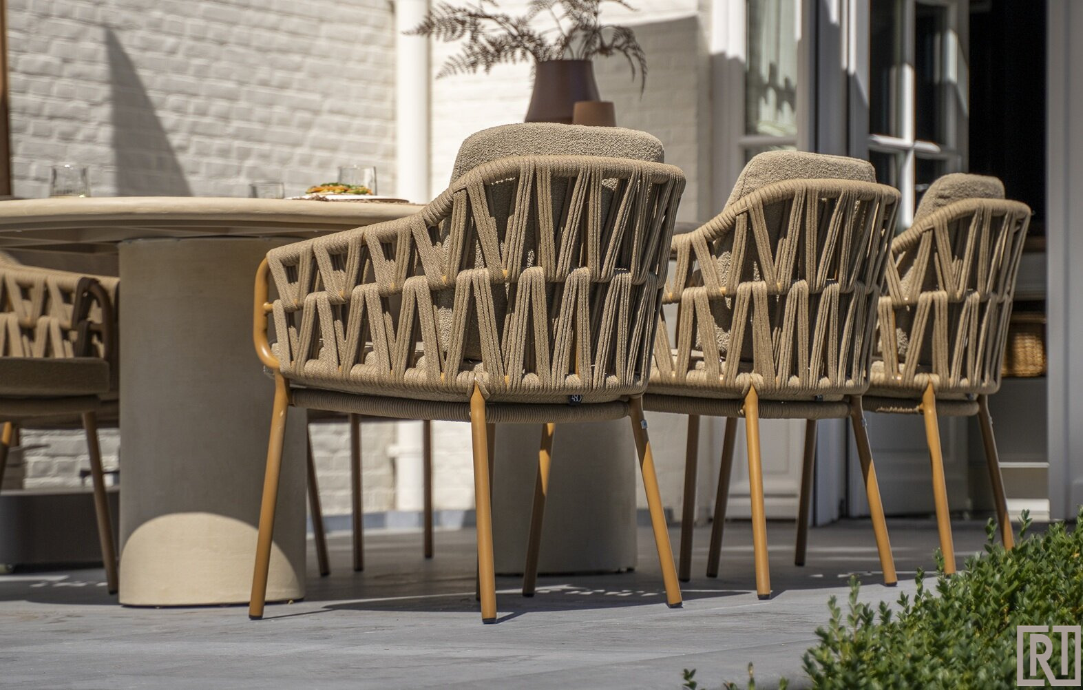 De kussenset van de Biarritz diningchair is van een all weather kwaliteit.
