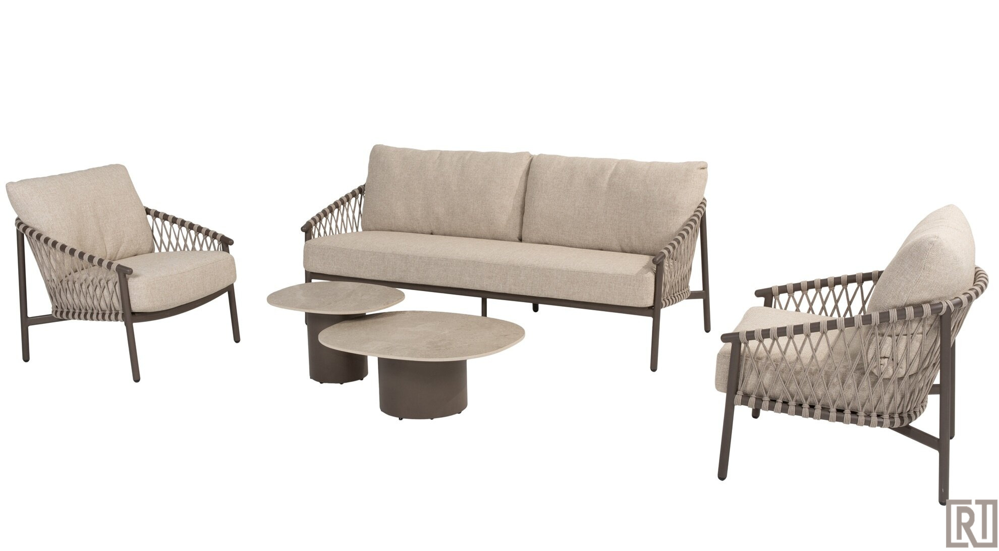 De Allora 5-delige loungeset van 4 seasons outdoor is een moderne loungeset in de nieuwe kleur terre in combinatie met rope.