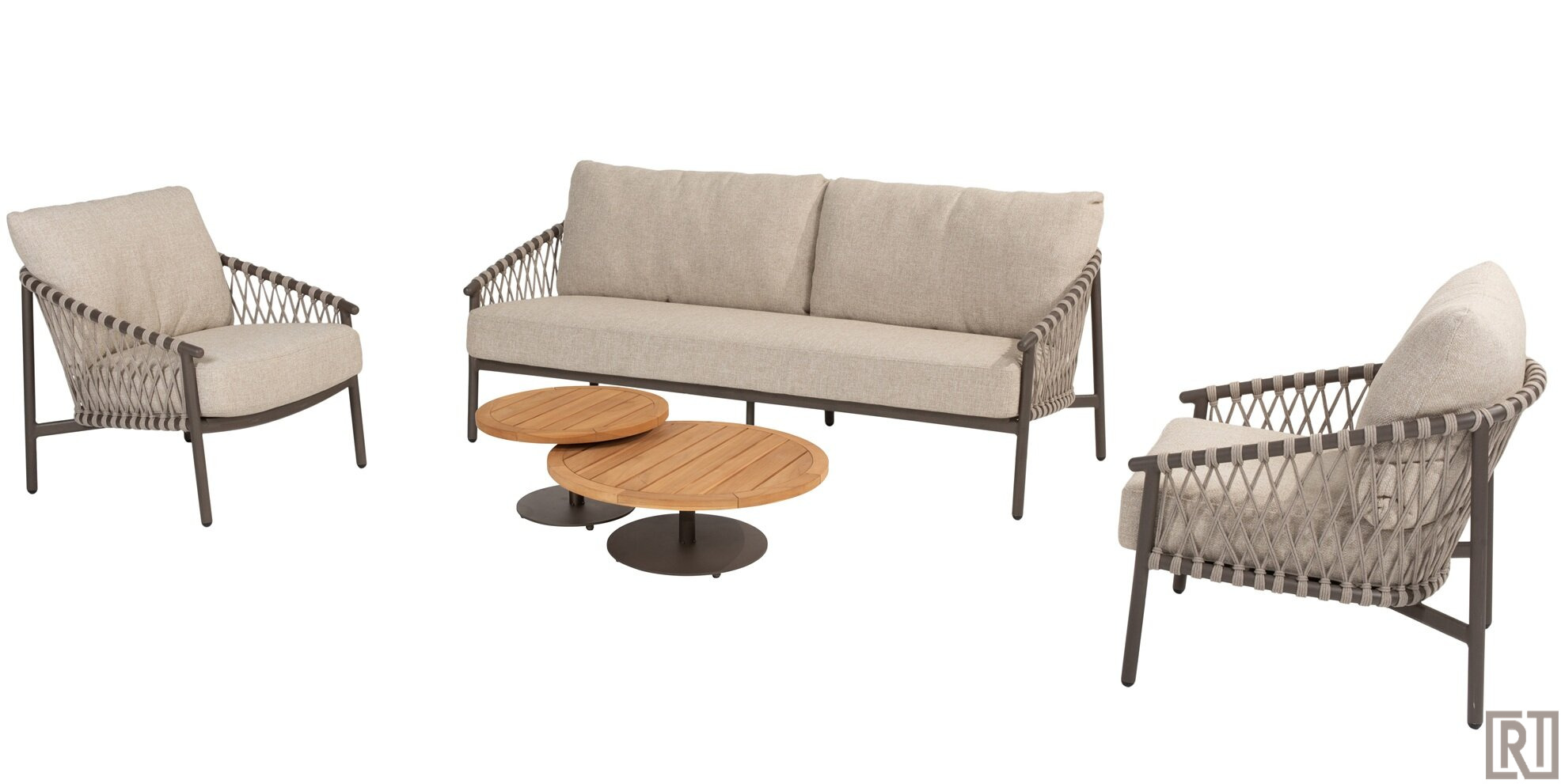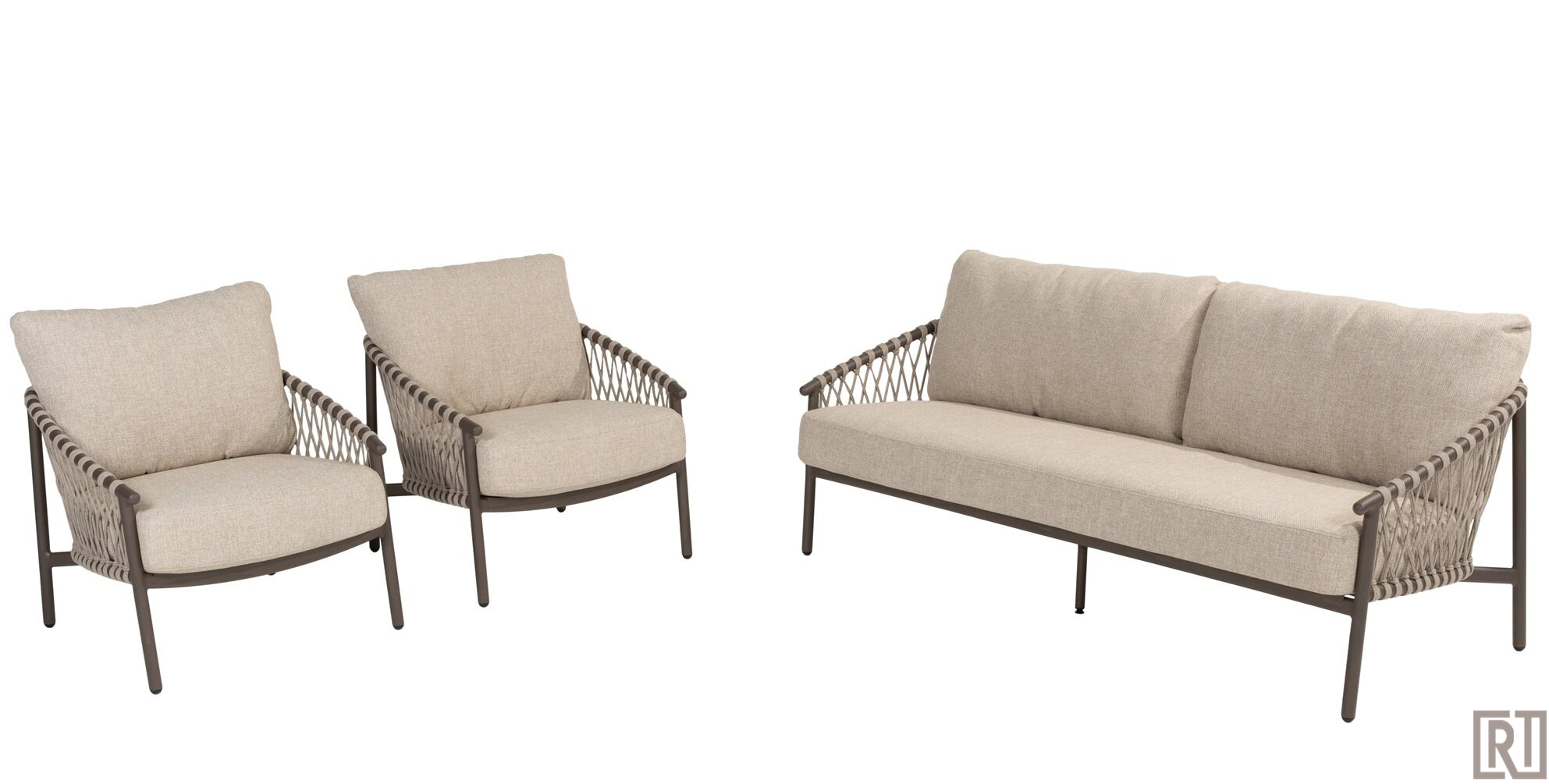 De Allora 5-delige loungeset van 4 seasons outdoor is een moderne loungeset in de nieuwe kleur terre in combinatie met rope.