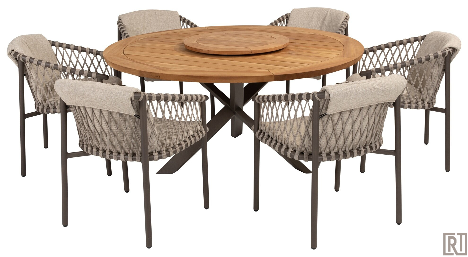 De Allora 7-delige dining set van 4 seasons outdoor is een vriendelijke dining set in de nieuwe kleur terre in combinatie met rope.