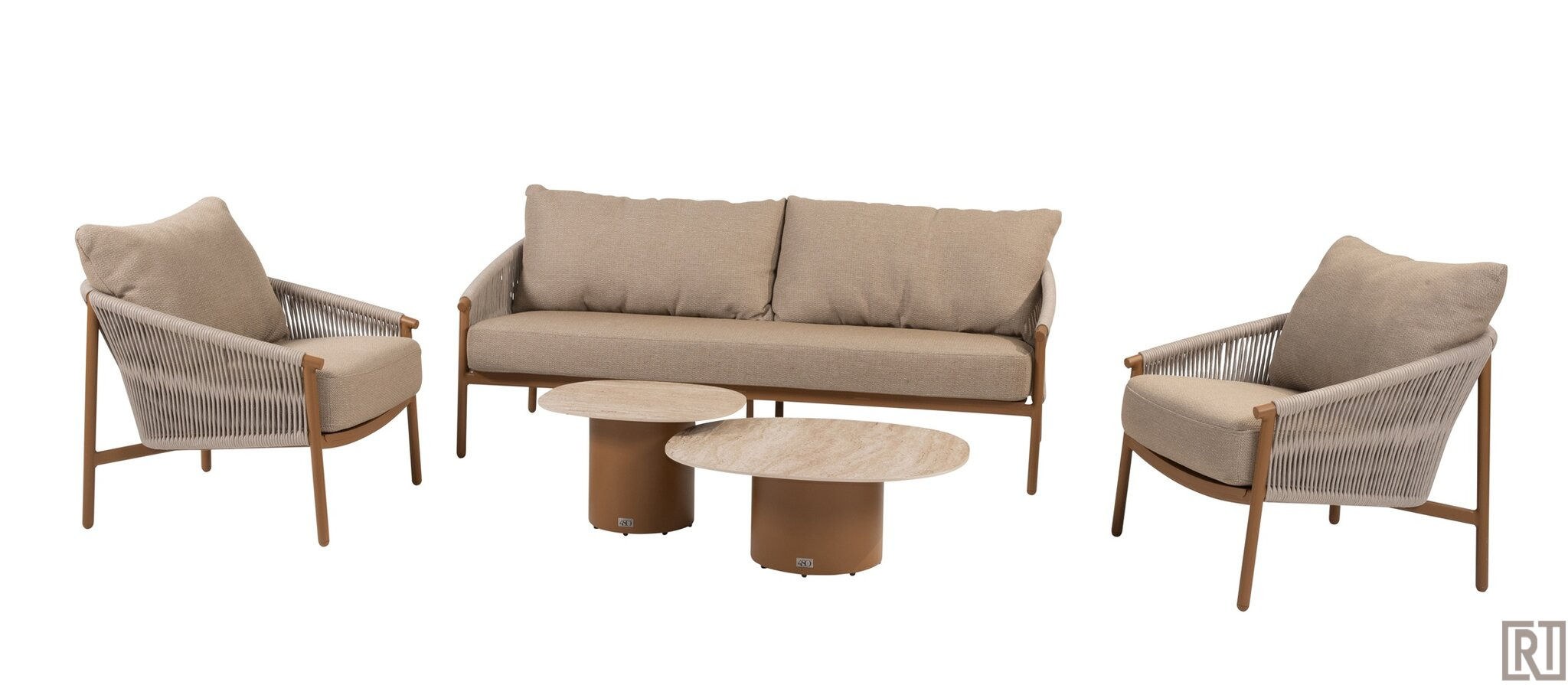 De Milos 4-delige loungeset van 4 seasons outdoor is een stijlvolle sofa loungeset in de nieuwe kleur amber in combinatie met rope.