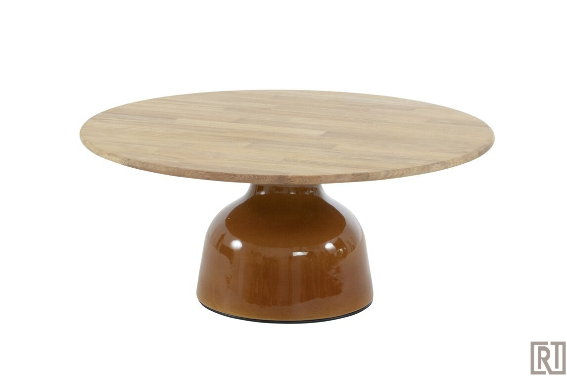 De June coffeetable van 4SO is een geheel nieuw soort coffeetable. Deze coffeetable heeft namelijk een zeer fraai keramiek onderstel in amber bruin met een massief teakhouten blad.