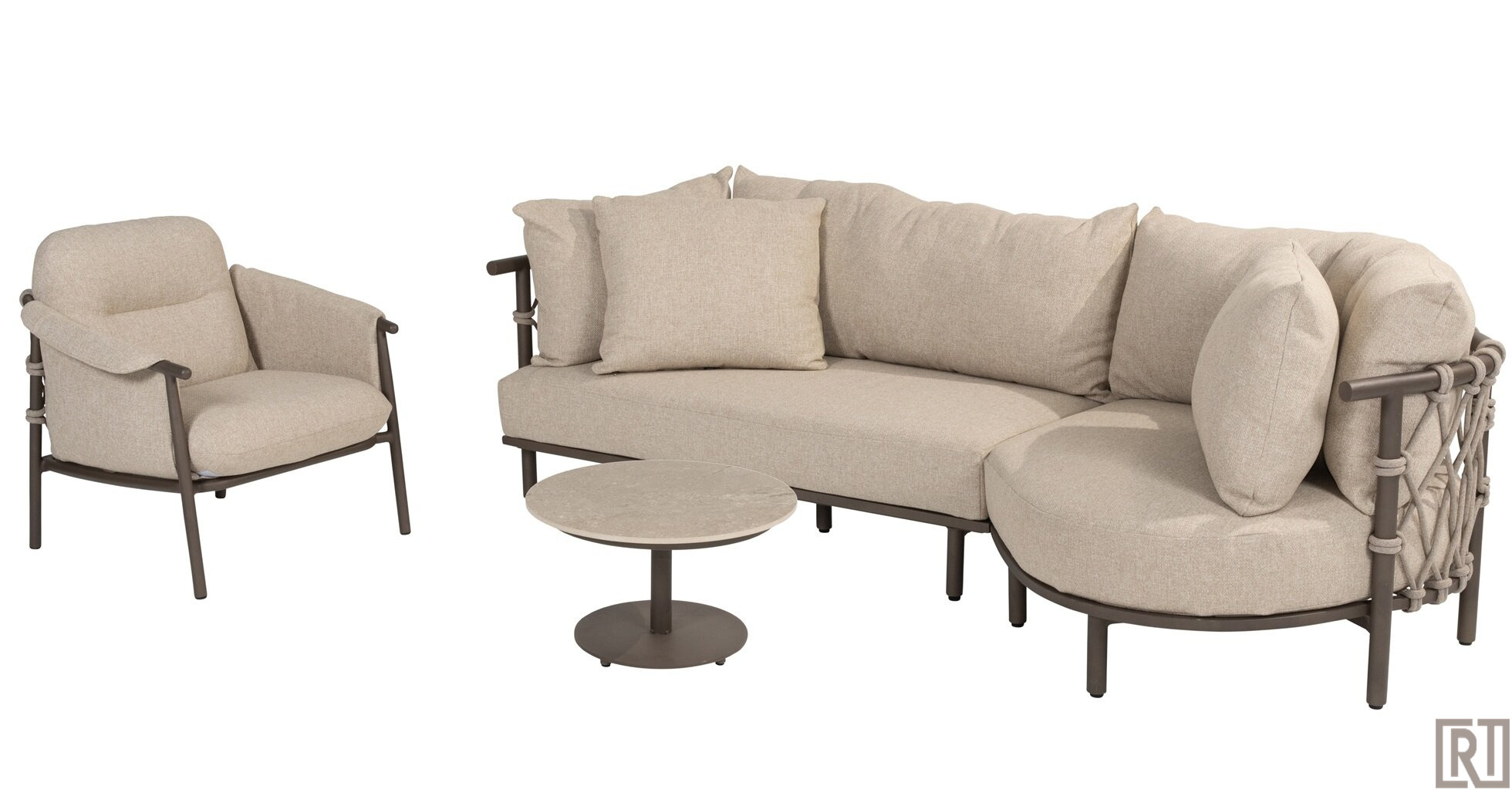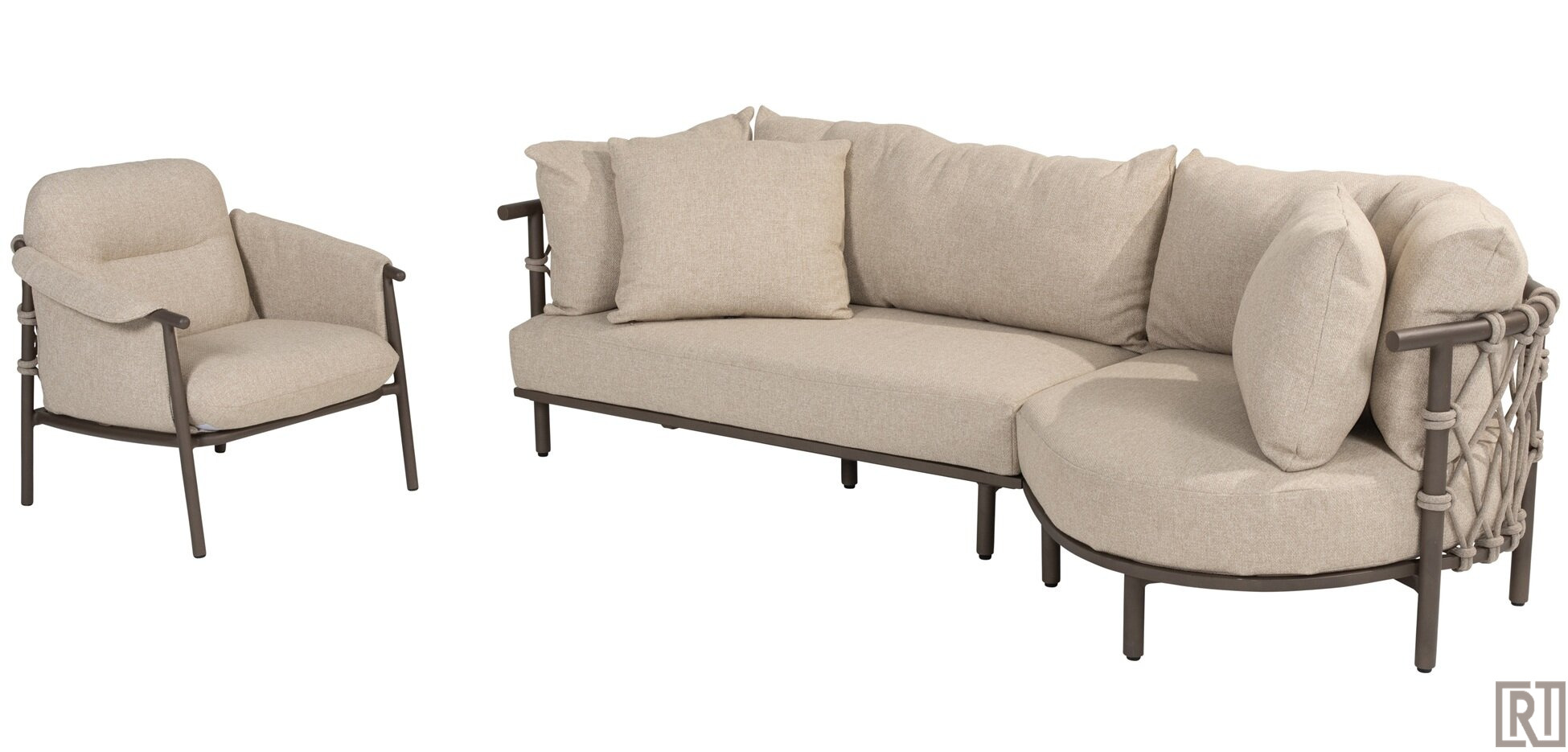 De Ezra 3-dlg loungeset van 4 seasons outdoor is een moderne loungebank met loungechair in de nieuwe kleur terre in combinatie met rope.