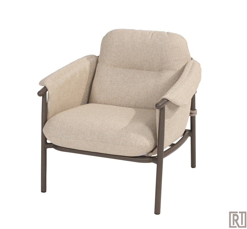 De Ezra 3-dlg loungeset van 4 seasons outdoor is een moderne loungebank incl een bijbehorende loungechair in de nieuwe kleur terre in combinatie met rope.