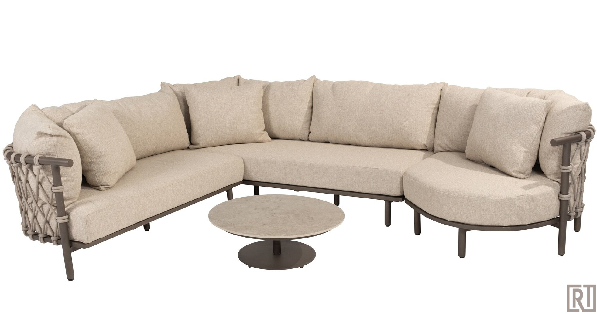 De Ezra 4-dlg hoekloungeset van 4 seasons outdoor is een moderne loungebank in de nieuwe kleur terre in combinatie met rope.