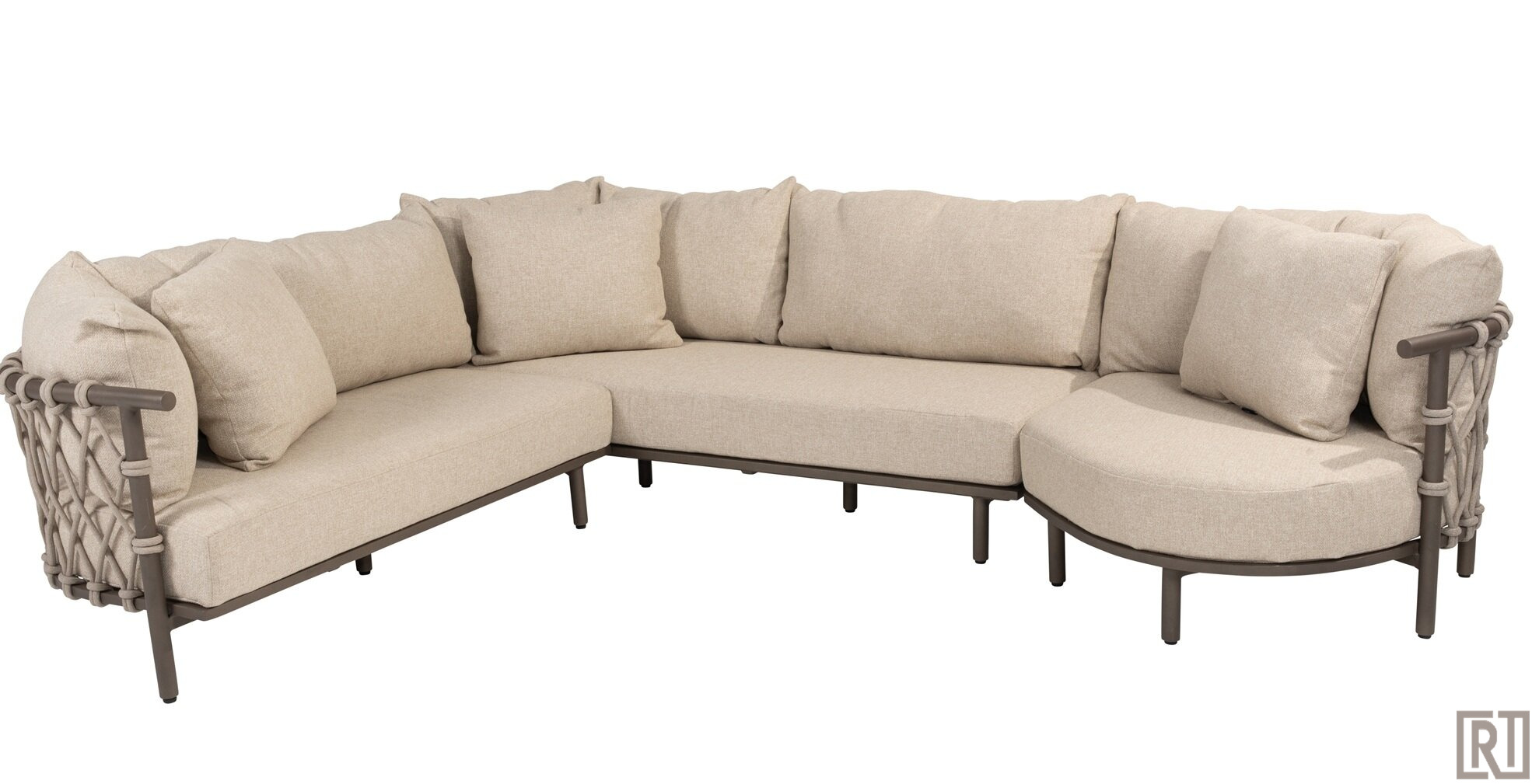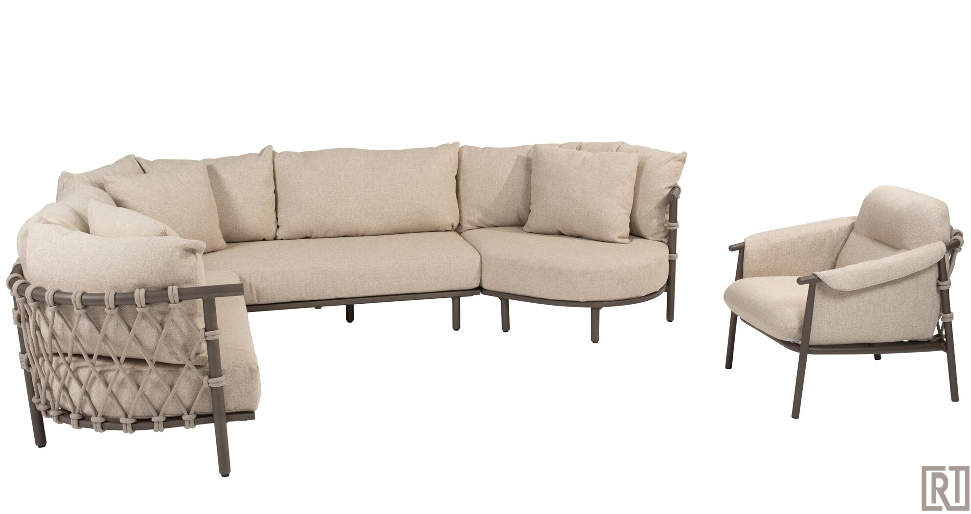 De Ezra 4-dlg hoekloungeset van 4 seasons outdoor is een moderne loungebank in de nieuwe kleur terre in combinatie met rope.