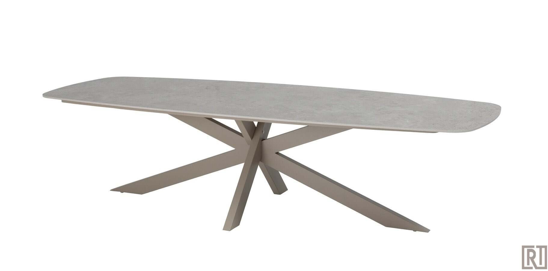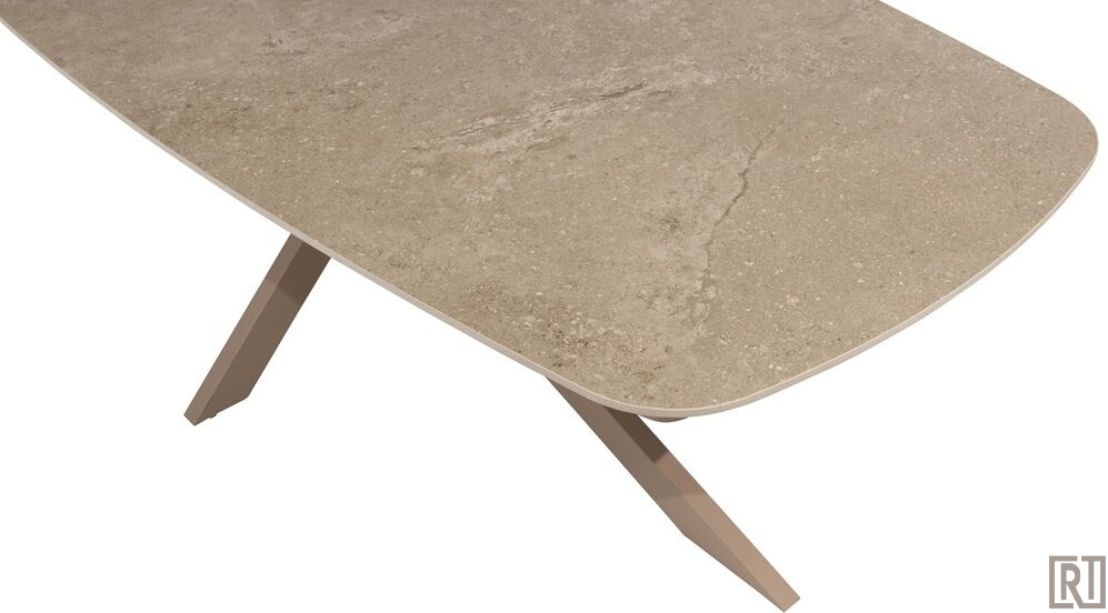 De Prado barrel shape dining table is gemaakt van een rvs poedercoated frame in de nieuwe kleur zand latte met ceramic top.