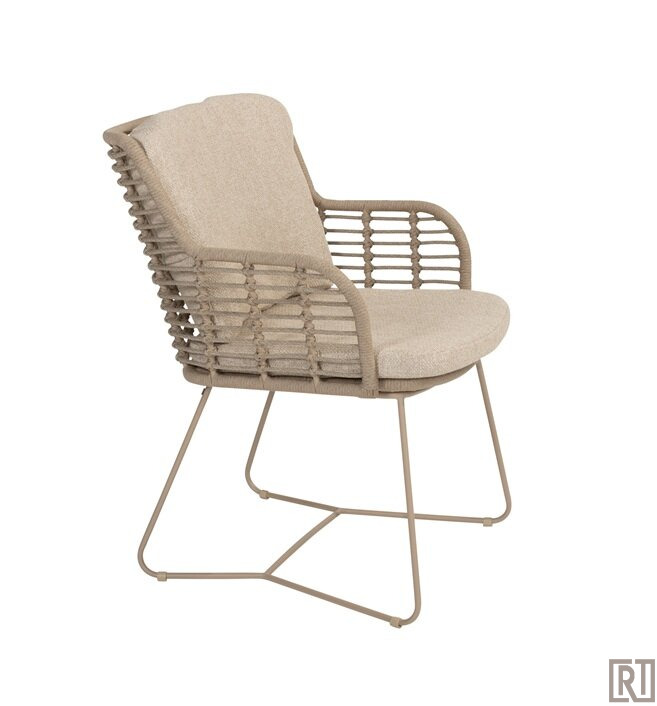De Fabrice dining set van 4 seasons outdoor is een strakke moderne dining set in de kleur latte in combinatie met rope en keramiek.