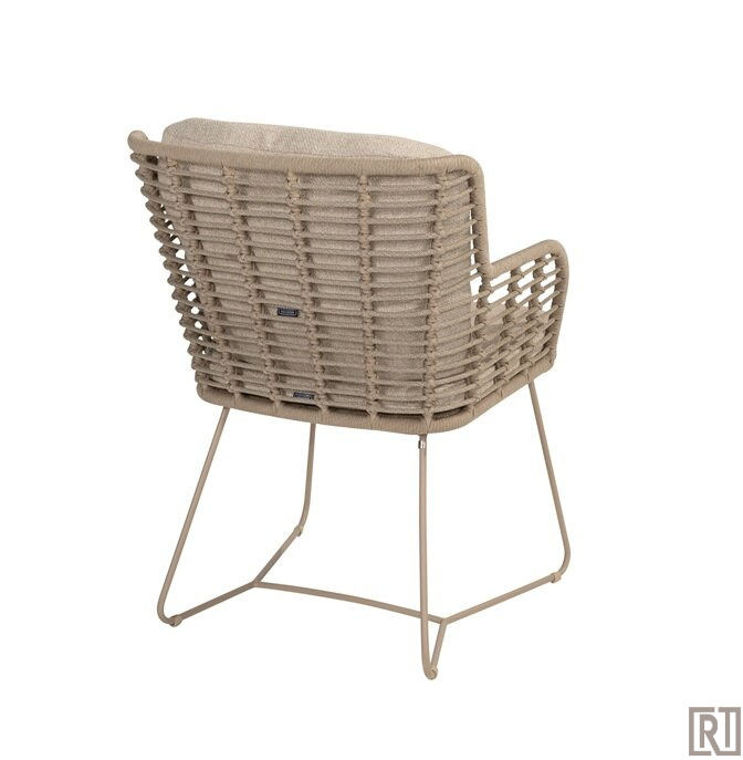 De Armstoel wordt geleverd met een all weather kussenset in een fraaie zand-taupe kleurige stof Ipanema 140 hetgeen een grof geweven stof is in olefin met een natuurlijke uitstraling.