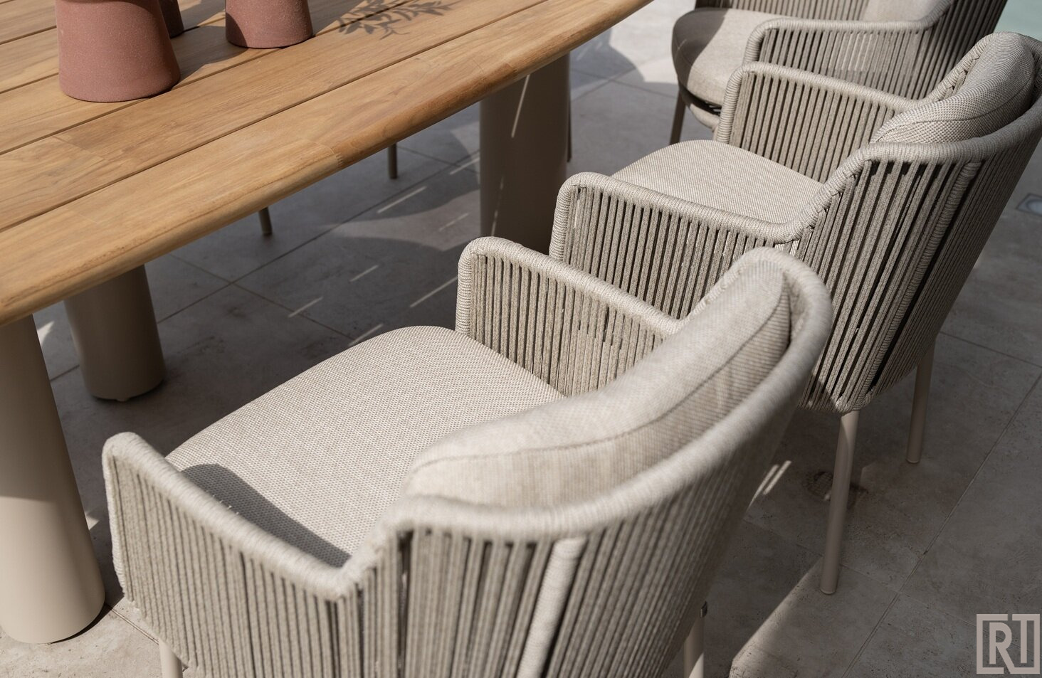 De Bernini armstoel is gemaakt van een gepoedercoat aluminium frame icm fraai gevlochten rope.