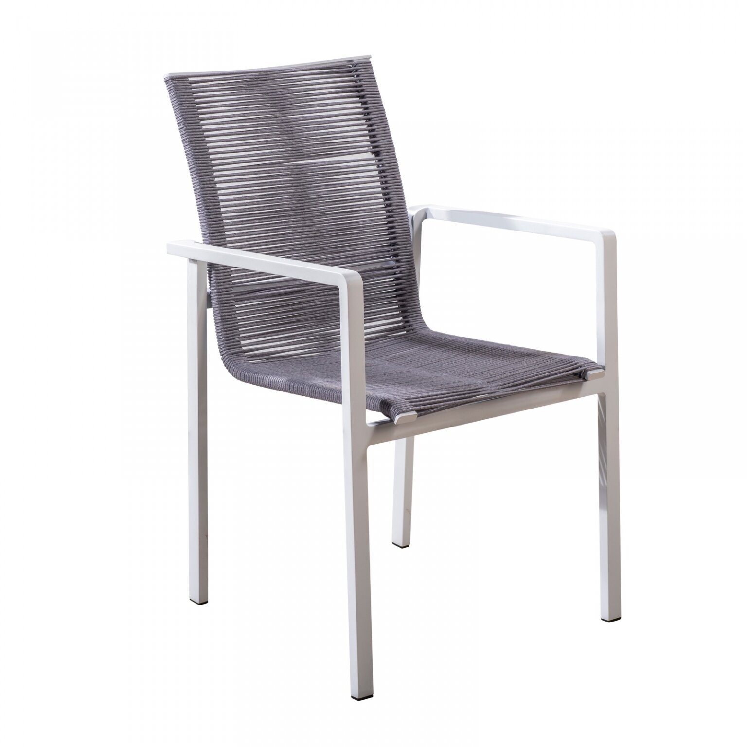 De Ishi armstoel is gemaakt van een aluminium frame white gepoedercoated met een rope zitting en rug in light grey.